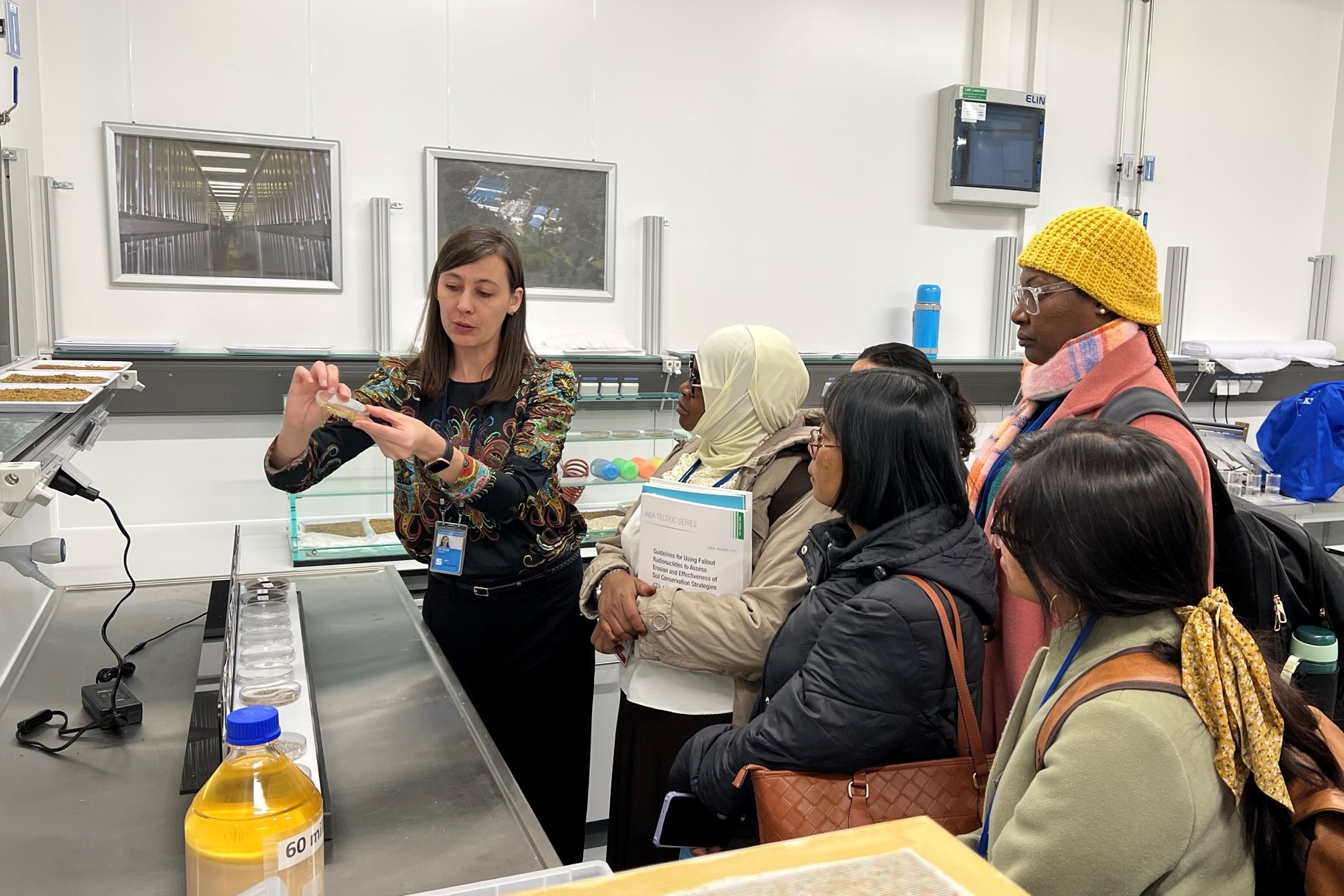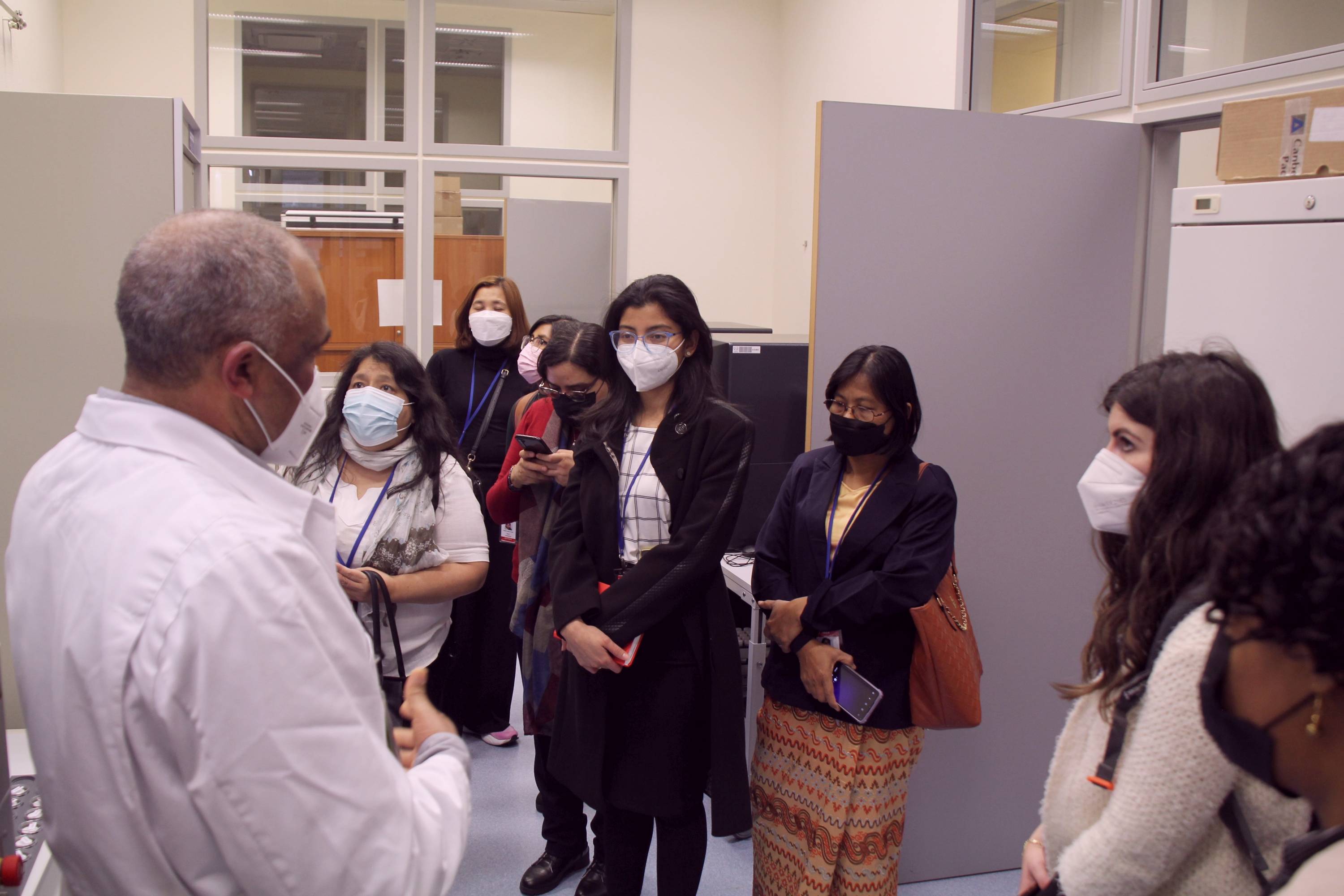 Here, participants watch a demonstration at the Insect Pest Control Laboratory, known for its work on the Sterile Insect Technique.