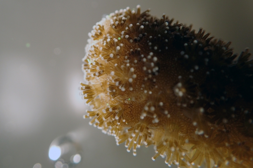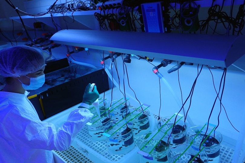 The small coral nubbin on this photo is part of the marine plastics experimental work at the IAEA Environment Laboratories in Monaco.