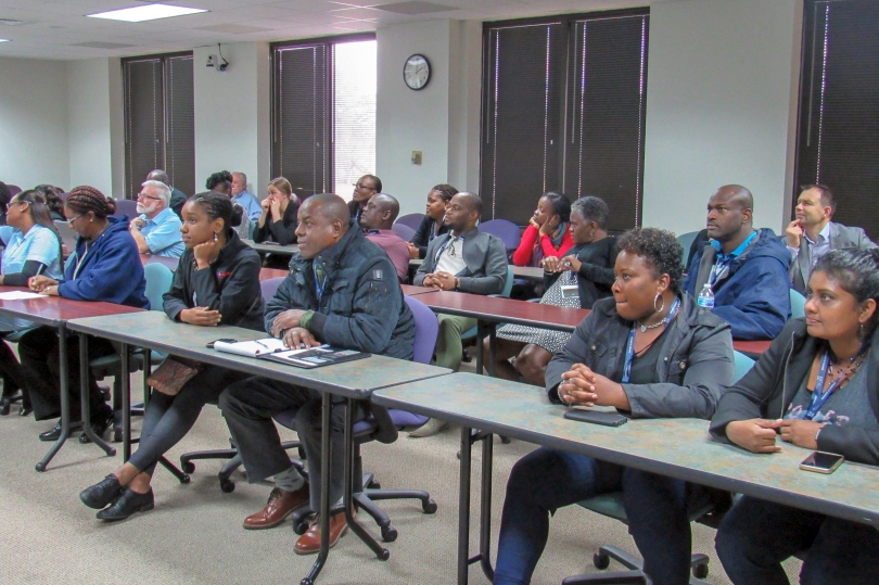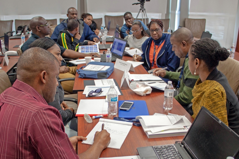 The School comprises lectures, training sessions, practical exercises and field visits. Here, lecturer Marjan Tkavc, from Slovenia, teaches students how to analyse an emergency and its response at the School held in College Station, Texas, USA, in which 22 participants from eight Caribbean countries took part.