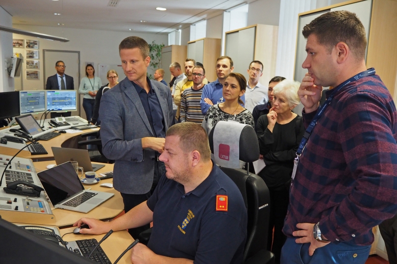 Host Member States showcase their facilities and practices to students during technical visits. During the School held in Tulln an der Donau, Austria, in October 2018, the 21 participants from 15 European countries visited the Regional Dispatch and Warning Centre in Lower Austria.