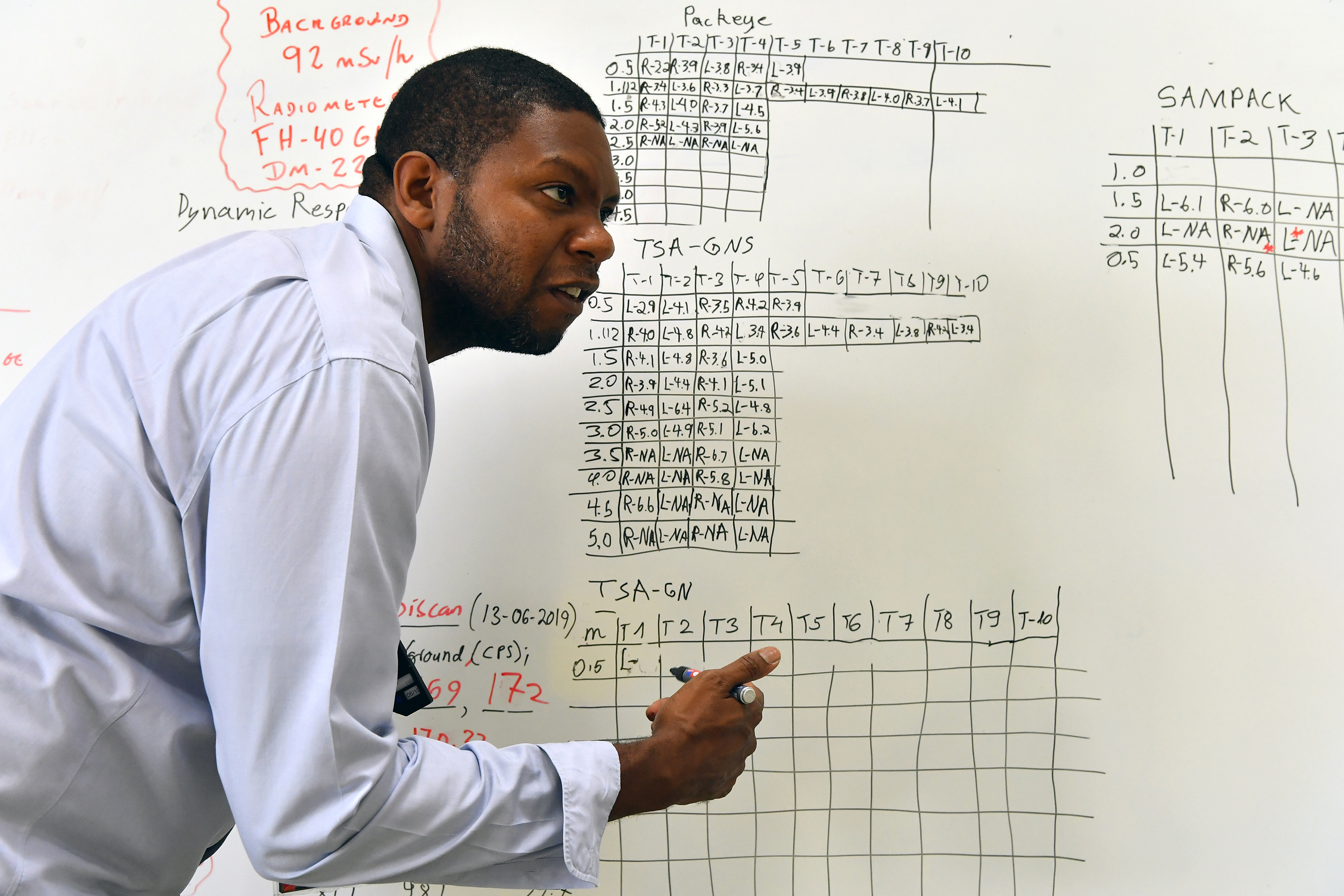 Some BRDs are more effective for detecting stationary sources. Stationary sources may be a lost or misplaced radioactive source or a radiation exposure device, which could be an ordinary-looking object containing radioactive material to intentionally expose people to ionizing radiation without their knowledge. Static sensitivity tests help determine the ability of BRDs to detect radiation sources or hotspots when the source is in a fixed position and enable it to identify what caused the radiation alarm to go off. A BRD’s angular sensitivity could affect the accuracy of gamma radiation dosimetry detection. When BRDs are used for radiological mapping, the results can be impacted by the changing orientation of the BRD in relation to a radiation source. Each turn made by the BRD user can cause a change in sensitivity if the BRD system is directionally dependent. Knowing how to conduct angular testing is important to determine the BRD’s angular sensitivity. This knowledge can play an important role in mapping reference radiation areas used to calibrate or verify other in-situ systems, such as mobile or airborne gamma spectrometers.