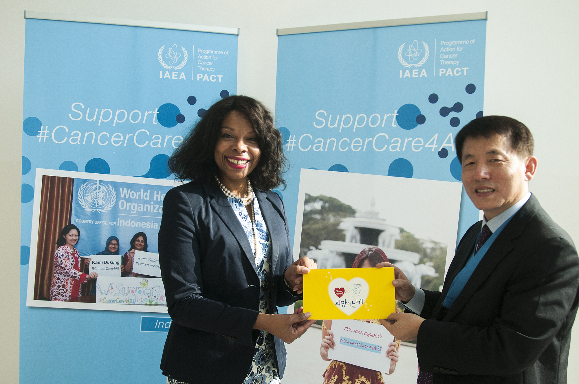 Since 2007, KONICOF has collected public donations as part of the country’s “Wings of Hope” campaign to raise awareness of the growing cancer crisis and to support comprehensive cancer control activities in developing countries. The contribution marked the 10th consecutive year that KONICOF has supported PACT. The gift will contribute to the Agency’s work to address cancer in developing countries. In addition, the Government of the Republic of Korea actively supports the IAEA and PACT’s cancer control activities in a number of ways including offering fellowships in the latest cancer treatment methods for oncology experts from around the world at the Korea Institute of Radiological Medical Sciences (KIRAMS).