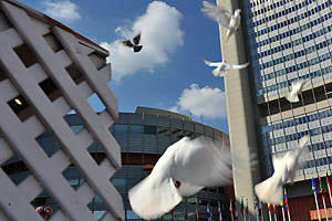 During the ceremony, 100 white peace doves were released and participants were invited to ring a "Peace Bell" located in the VIC's Memorial Plaza.