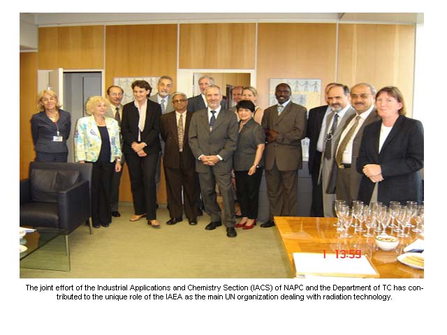 The achievements and leading role of the IAEA in development of radiation technology receive much appreciation from Member States, industry and the scientific community. The above team, through dedicated, competent performance through coordinated research projects (CRP) and support to technical cooperation projects, has done commendable work for the above cause during the past few years and in particular in 2004.